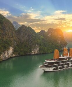 Upon arrival at the harbor, board your overnight cruise ship and begin your journey through the emerald waters of Halong Bay. Marvel at the iconic limestone karsts and step into one of the bay’s most impressive grottoes, known for its striking rock formations.